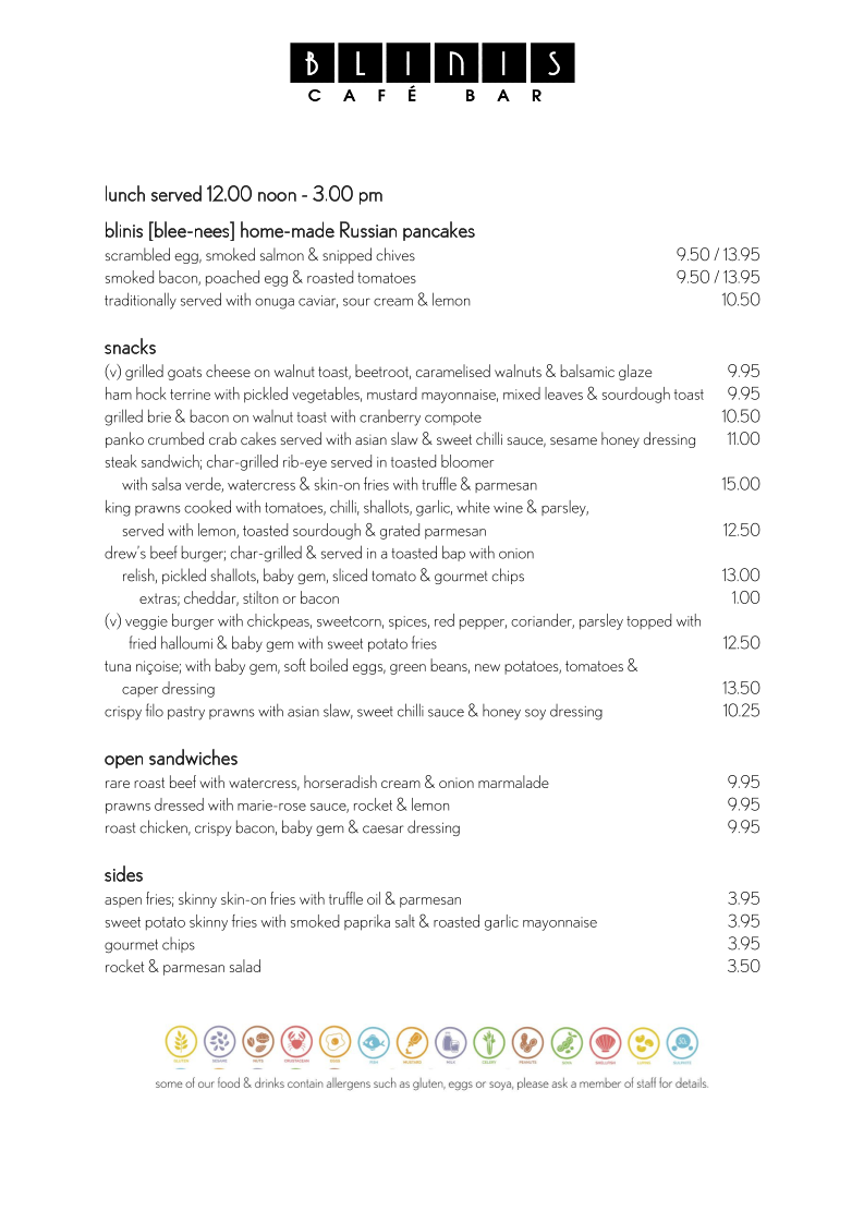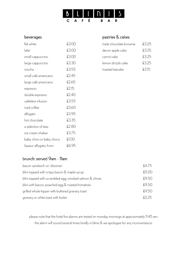 Blinis Cafe Bar Menu